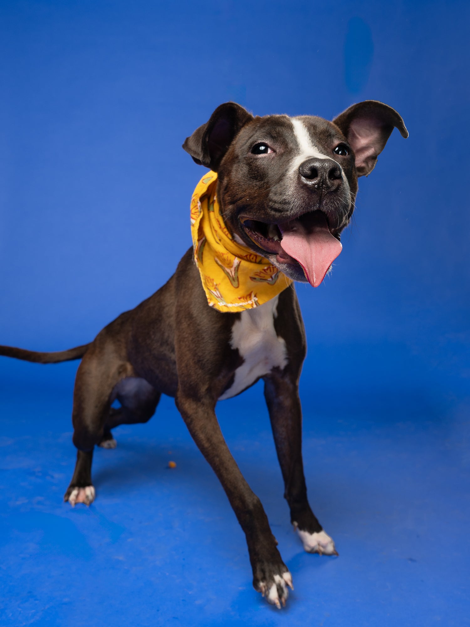 At just 9 months old and 25 pounds, Socks is a petite bundle of energy with the sweetest white-tipped paws (like she’s always dressed for the occasion). She’s a playful, affectionate pup who lights up the moment she’s out of her kennel. Sadly, with the shelter overcrowded, she only gets a few outings a week, and it’s left her feeling down—but the second she gets outside, her tail wags nonstop and her joy comes rushing back.